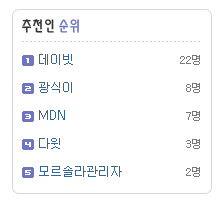 추천수가 같으면 랭킹이 노출이 안됩니다 ㅠㅠ 도와주세요