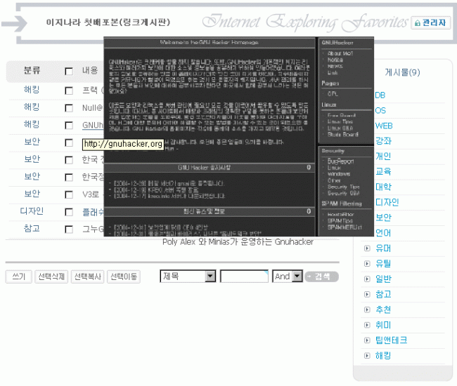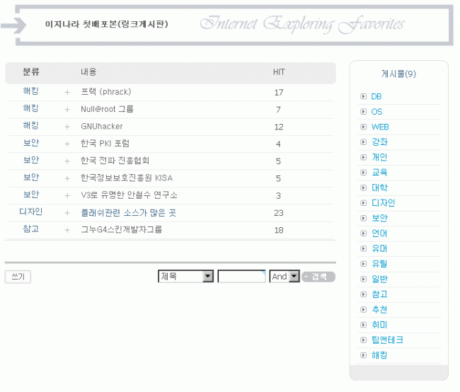 기존에 torry님께서 만드신 인터넷즐겨찾기 링크게시판을 토대로 회원님들의 의견을 바탕으로 만들었습니다.