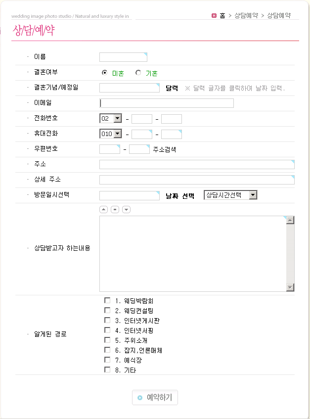 상담예약 스킨입니다(목진철님의 스킨을 새롭게 구성했습니다.) 정보