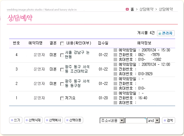 게시판 상담예약 스킨입니다(목진철님의 스킨을 새롭게 구성했습니다.)첨부파일