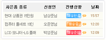 배송준비 배송중 배송완료 표시나는 게시판