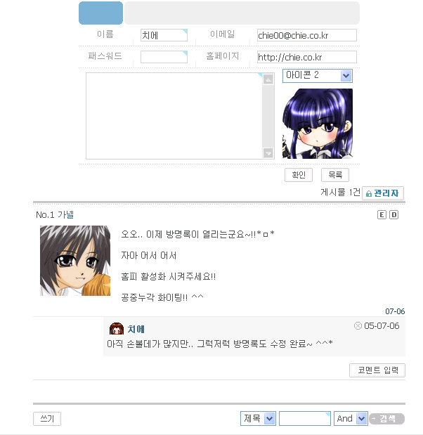 -0-;;(벌써~~ 치에님 홈피에 있는.. 방명록은 계속계속~~ 업그레이드 되는게 보이네요 -0-//