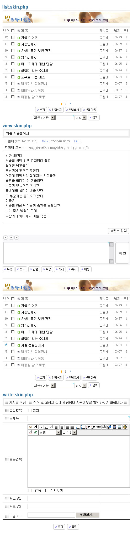 타이틀이미지에 대한 설명은 앞의 jepae2 게시판에 대한 설명을 참고 하시면 됩니다.