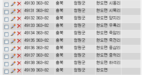 G4용 2007년 1월 8일자 우편번호 SQL > 그누4 스킨