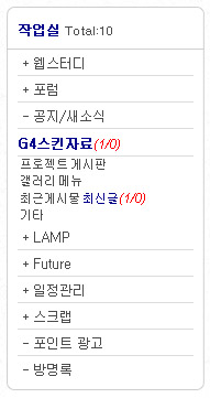 분류가 활성화된 게시판의 경우 이름앞에 + 기호를 그외 - 기호를 붙였습니다.