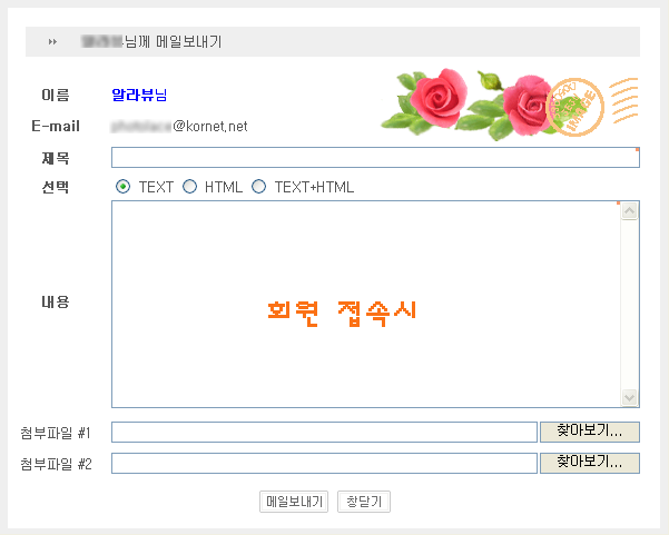 그누보드 기본 폼메일을 조금 꾸며 봤습니다.