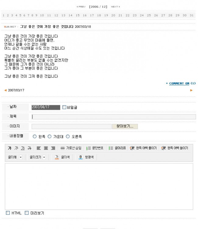 제 홈페이지에서 사용하고 있는 일기장 게시판입니다...