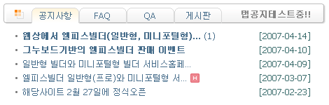 알라뷰님의 탭메뉴스킨을 기반으로 한 신현우님의 무한확장 탭달린 최근리스트