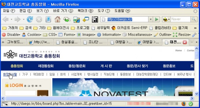 가령 어느 모임의 회장인사말 게시판이 있습니다.