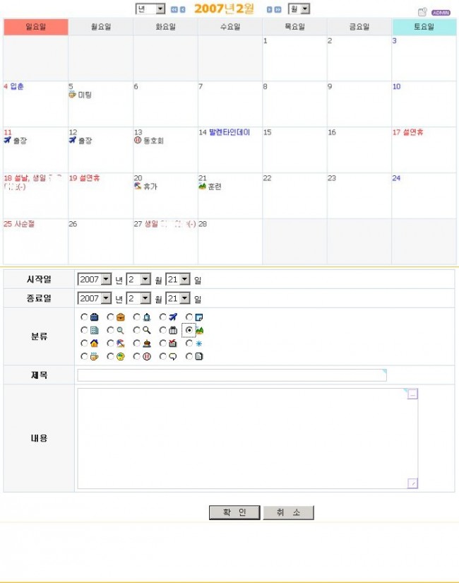 2. mydiary.2007, mydiary.0000(기념일 내용) 파일을 /bbs/calendar/ 에 올린다.