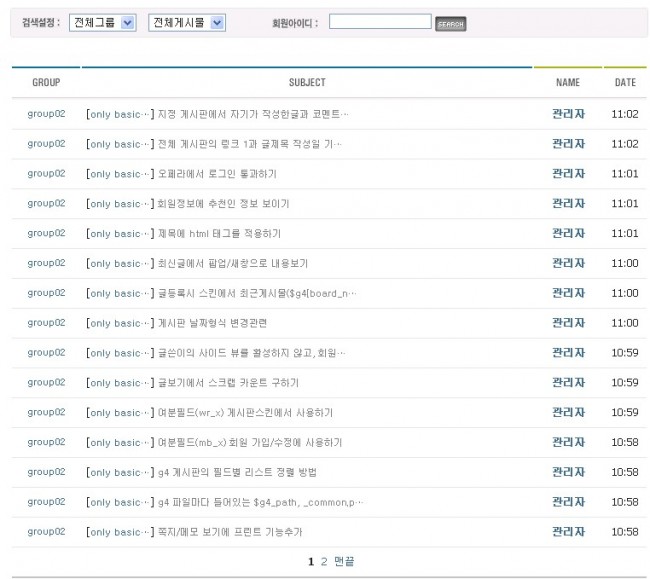 그누보드 사이트에서 4.20 배포시 사이트에 적용된 최근게시물 스킨