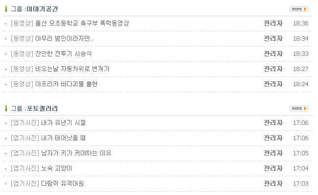 그룹형 최근게시물 + 작성자 + 날짜 > 그누4 스킨
