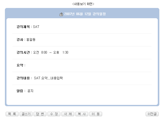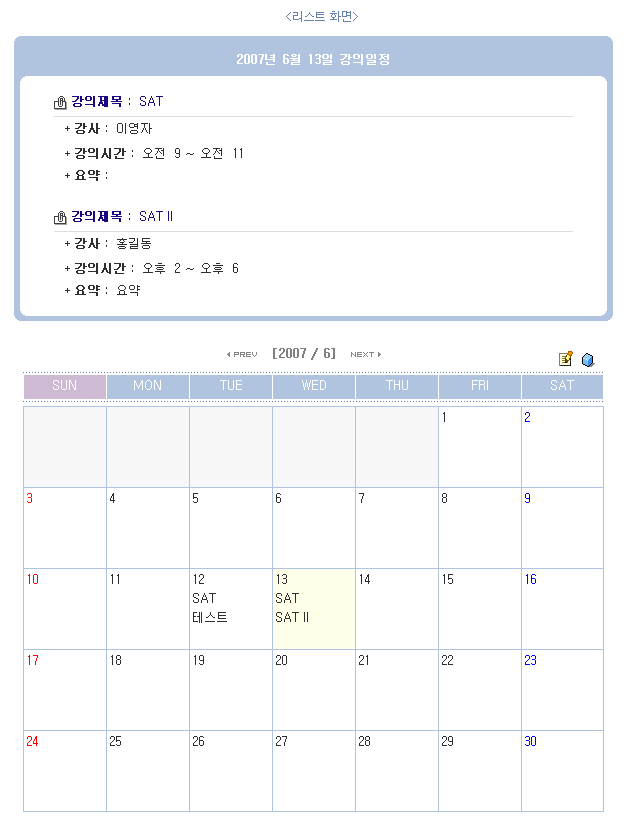 강의일정관리 용도입니다. 지금 제작하고 있는 사이트에서 필요해서 만들었습니다.