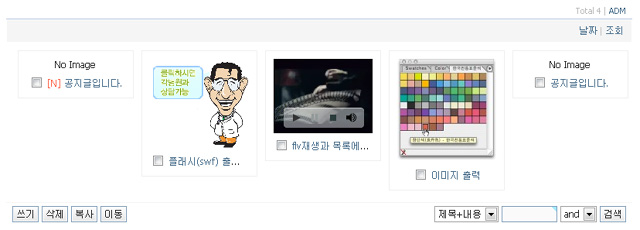 목록에서 flv와 플래시, 이미지가 미리보기 되는 게시판입니다.