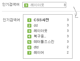 인기검색어 실시간인기검색어 스크롤되고 마우스오버하면 펼침효과관련링크