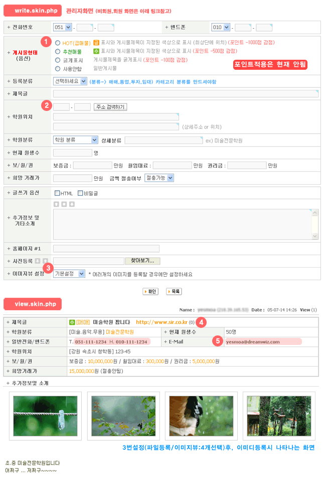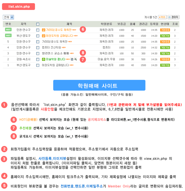 게시판 학원매매 스킨 (구인구직/매매사이트 적용가능)첨부파일