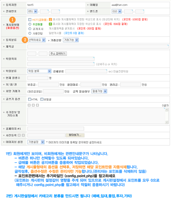 게시판 [포인트 차별적용] 학원매매 스킨 (업그레이드)