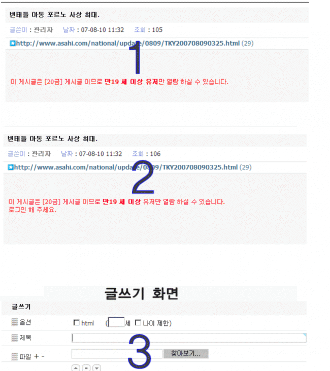 http://www.sir.co.kr/bbs/board.php?bo_table=g4_skin&wr_id=47943&sca=&sfl=wr_name%2C1&stx=%B6%DF%B6%F4%C0%C7%C0%CC%B8%A7&sop=and 의 뜨락님 게시판에 나이제한을 적용한 것 입니다.