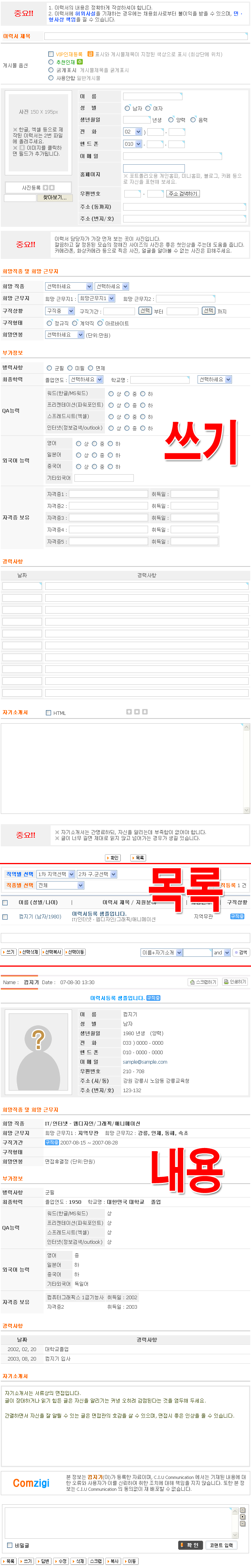 게시판 한가위 특집 - 인재정보 (이력서, 구직) 게시판