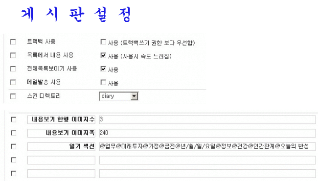아울러 게시판 세팅도 이글에 올린 이미지와 같이 합니다.