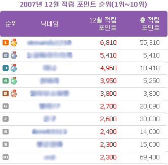 월별 포인트 랭킹 순위(최종수정)ㅜㅜ 정보