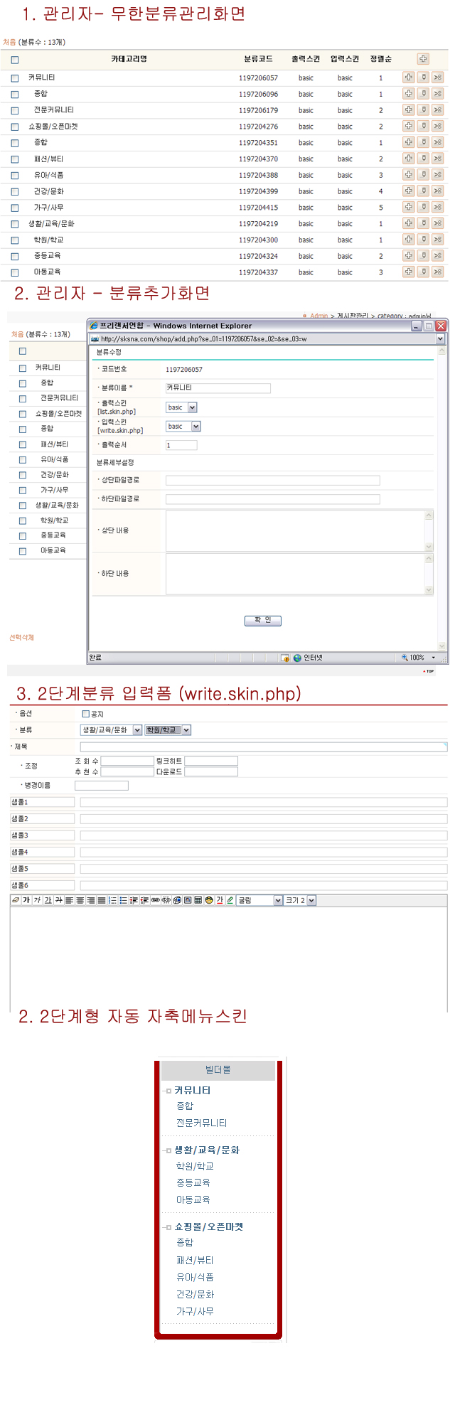 ㅁ. 소스 약간수정시 무한분류 게시판스킨적용가능.