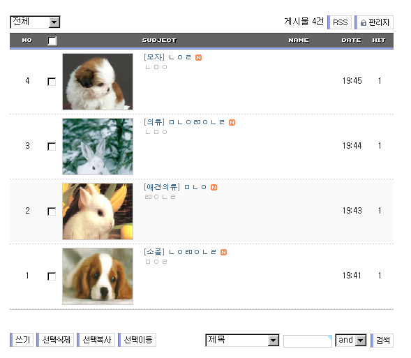 noimage 파일을 빠진거서 넜었고요...... list.php 와 write.php 파일이 수정되어서