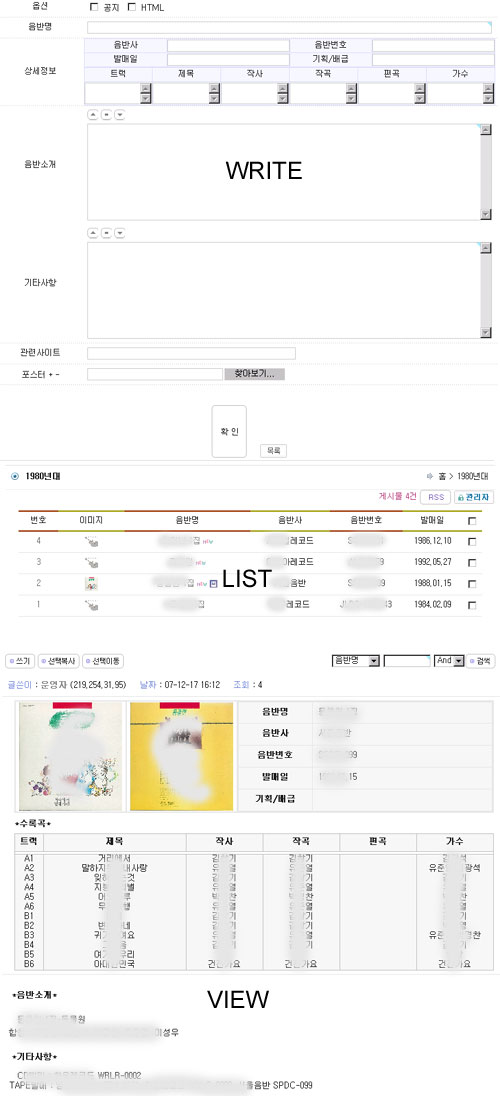 음반 정보게시판 스킨 잘쓰겠습니다~!