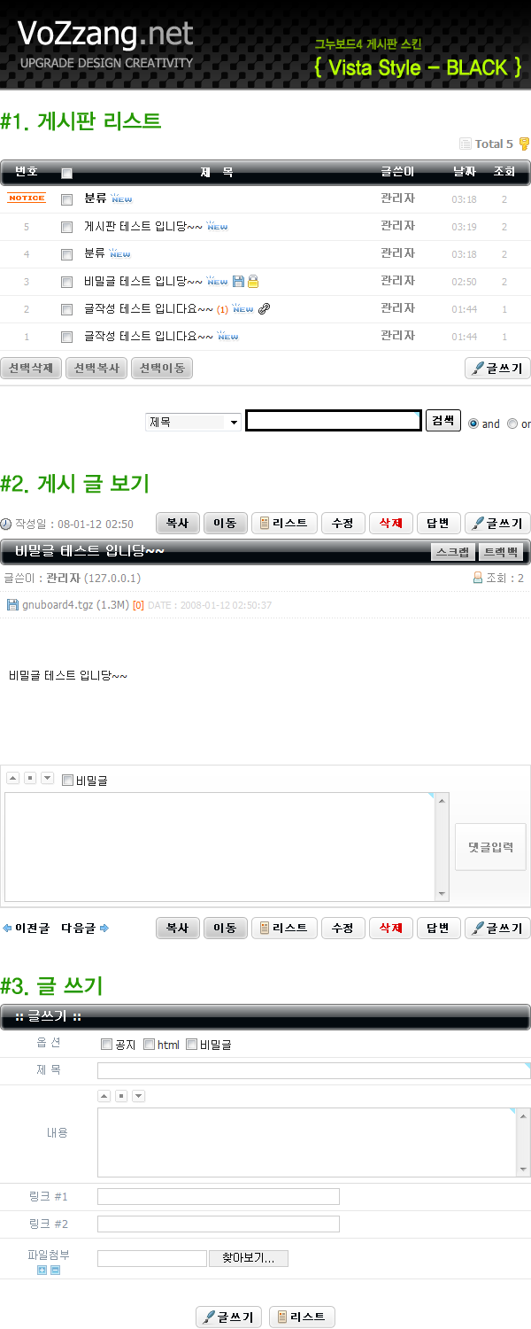 게시판 일반 게시판 스킨 : Vista Style - Black