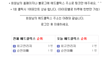 에드클릭스 전체 순위와 오늘 순위 두가지를 출력해주는 스킨입니다.