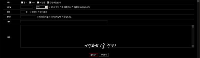 5. 이제 제가 올려드린 게시판을 여시고 아무글이나 적으시고 예약하기를 클릭하시게 되면