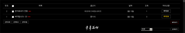 (나이트클럽 홈페이지를 급하게 만들면서 작업한 게시판이라 군더더기는 다 빼버리고 순수 예약관리만 처리하게 했습니다.