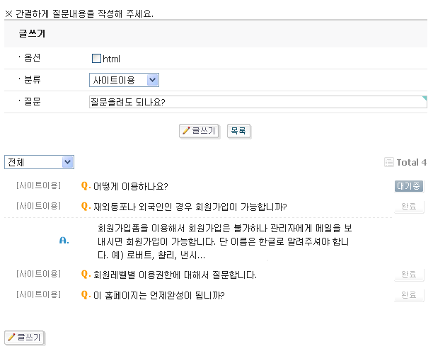 회원들도 참여할수 있게하는 능동적인 faq게시판을 만들어 보았습니다.