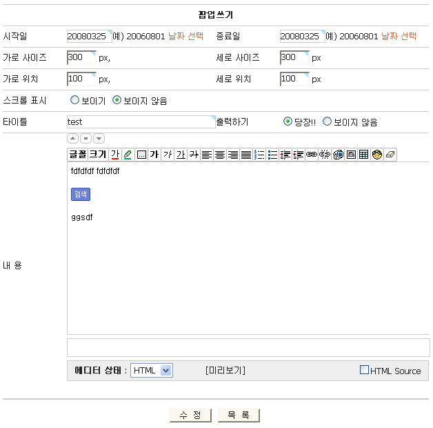 지에디터를 적용해서 팝업관리프로그램으로 수정하였습니다.
