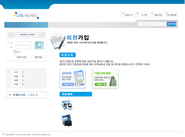 또한 기본 일반회원가입폼쪽만을 기존에 그대로 사용하고자하신분들은 1차로 먼저업데이트하시구 기존에 쓰신 스킨에서 register_form.skin.php 과 register_update.skin.php 관련된 img폴더 만 업데이트로 인하여 그대로 써도 상관없을거에요.(멤버스킨부분을말함.)