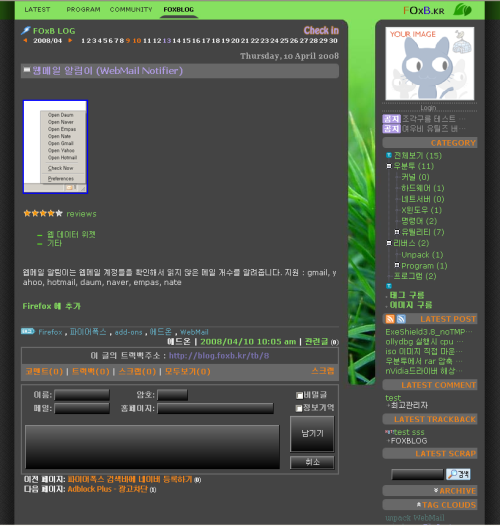 [euc-kr 지원] 그누보드용 블로그 여우비로그 0.3.2b 정보