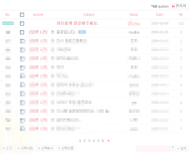 제 홈 리뉴얼하면서 만든 핑크빛 qna 게시판입니다.