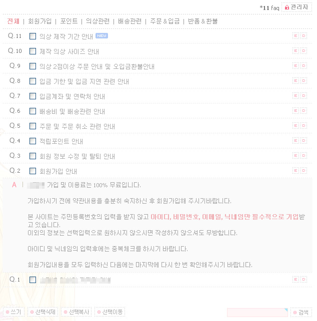 제 홈 리뉴얼하면서 만든 핑크빛 faq 게시판입니다.