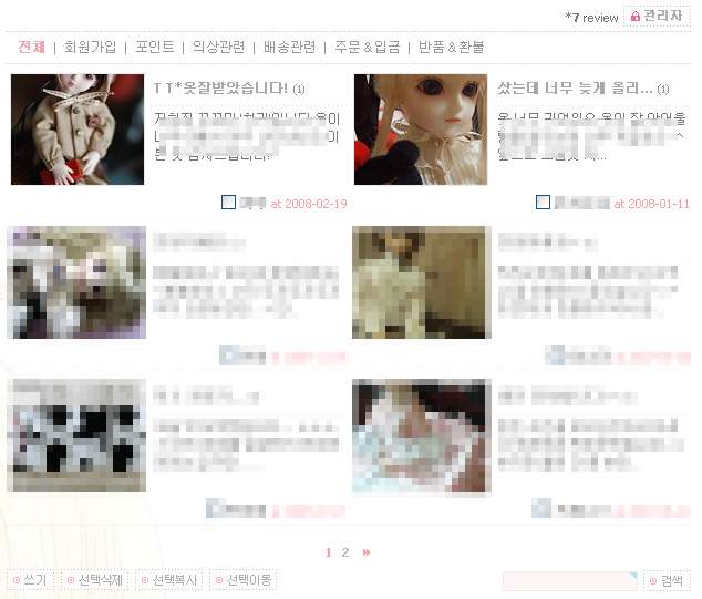제 홈 리뉴얼하면서 만든 핑크빛 갤러리 게시판입니다.