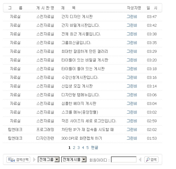 그린비스킨 시리즈-전체 최근게시물 > 그누4 스킨