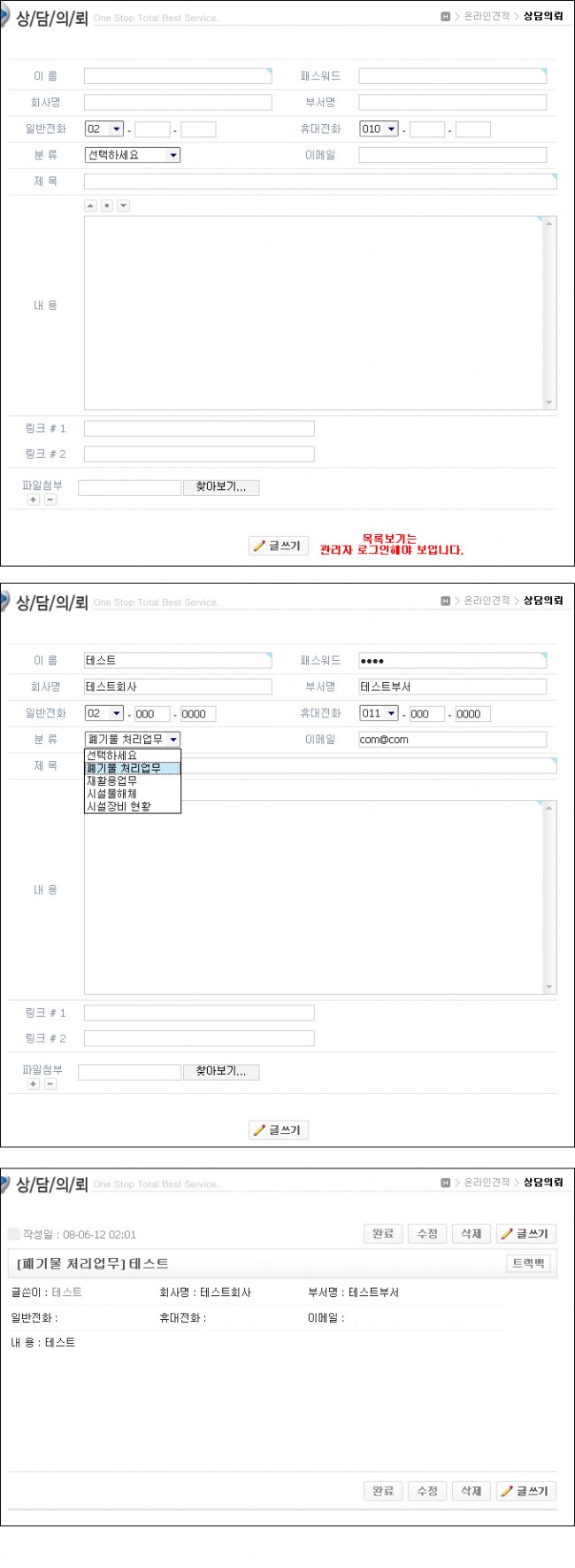 게시판 기본 스킨을 활용한 심플한 온라인견적.