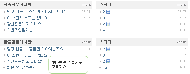목록에서 내용보기가 가능한 최신글스킨 정보