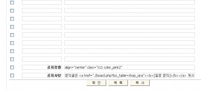 공지 사항기능은 하단에 스샷과 같이 게시판 관리모드에서 사용하실 수있습니다.