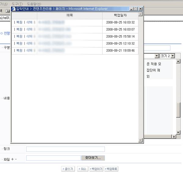 백업하기, 백업목록 버튼을 넣어 관리가 편하도록 하였습니다.