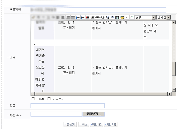 페이지 관리용 게시판 - cms - tinymce 에디터 추가 정보