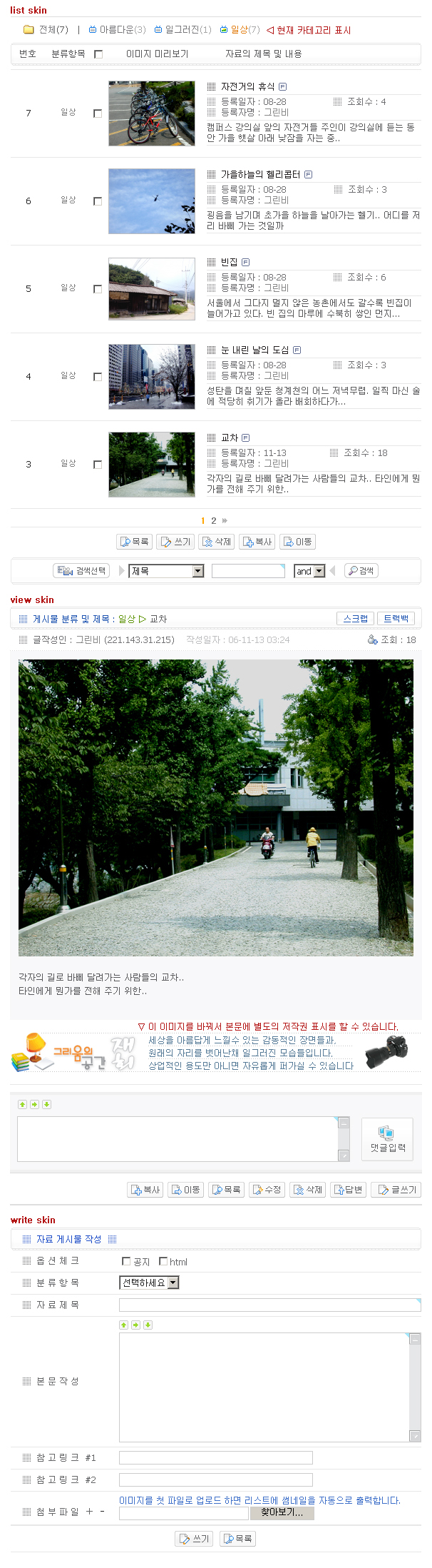 카테고리 자료실 또는 갤러리입니다.(기능 수정 및 변경) > 그누4 스킨