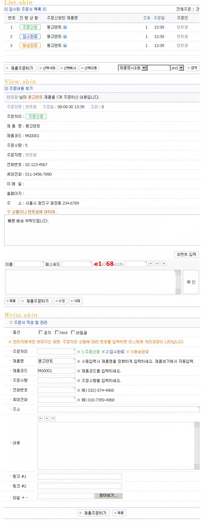 게시판 간이 쇼핑몰용 제품 주문게시판