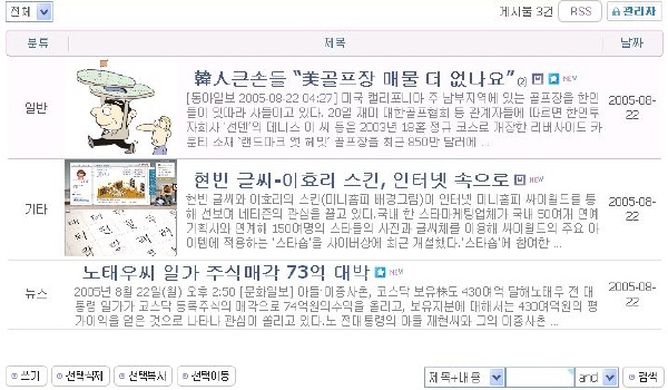 그누보드 스킨짜집기... 아주 편하더군요. 저같은 php랑은 웬수지간인 사람도 약간만 고쳐서 자기스탈에 맞추어서 사용해도 되더군요.