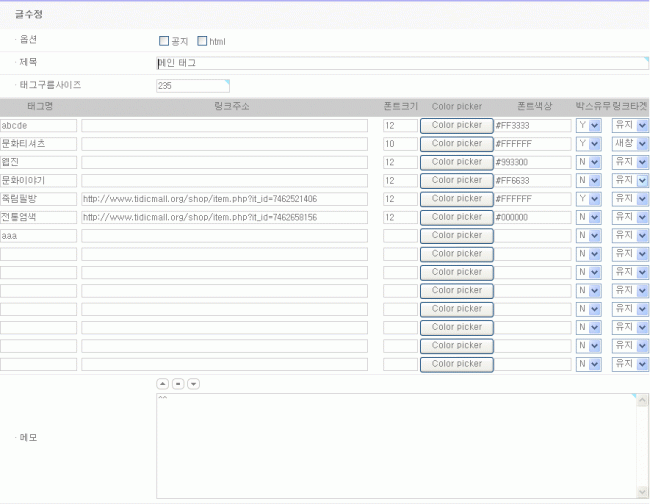 수정내역 : 태그구름사이즈 사이즈 추가 했구요
