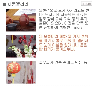 기능은 '썸네일이미지'와 '내용'을 리스트 형식으로 보여줍니다.